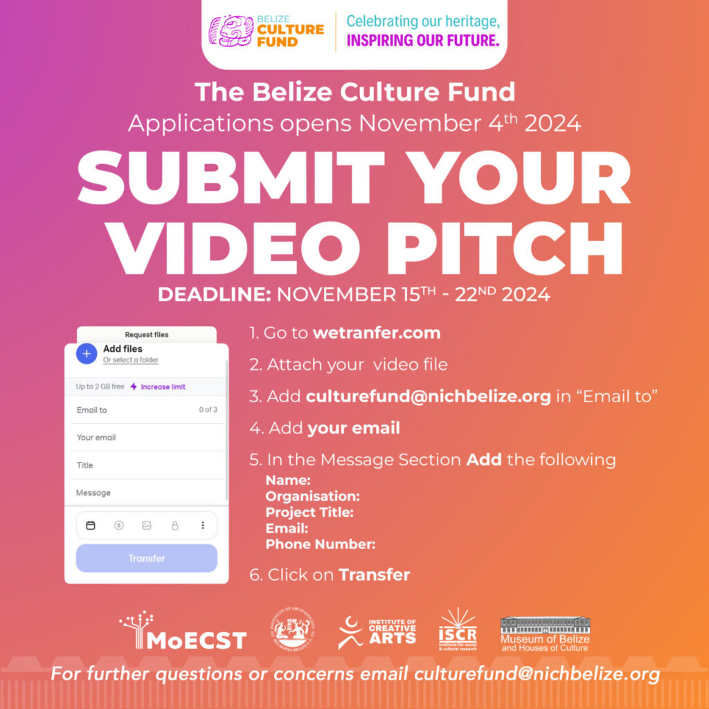 - One (1) Safeguarding Belize’s Living Heritage Grant for a maximum of $5,000
